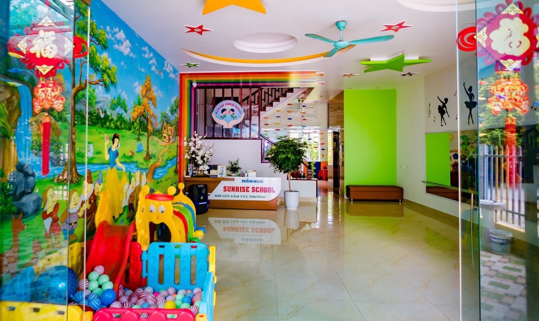 - Trường mầm non Ánh Dương (Sunrise School) - Lộc Vượng, Nam Định có khuôn viên trường 15m, không gian sạch sẽ, thoáng mát. Tổng diện tích trường 300m, trường có 4 tầng. Đồ dùng, đồ chơi, giáo cụ học tập thiết kế an toàn, thân thiện với bé.